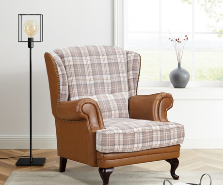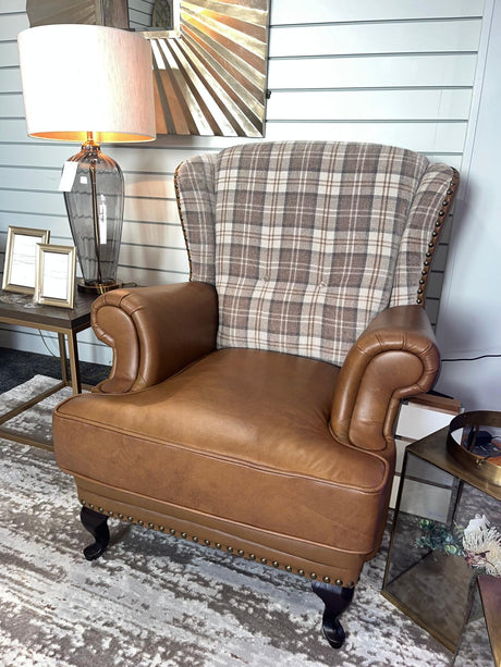 Imperial Leather and Fabric Tartan Chesterfield Sofa Suite