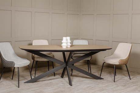 Sadia Dining Table 2m in Oak with 6 Sadia Chairs (grey)