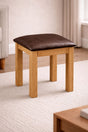 Constructed with sturdy American white oak and oak veneers to ensure durability, this bedroom stool features dovetail draw joints and a waxed finish that highlights its warm tonality, unbounded grain, and rustic allure. A leather seat pad has been added for additional comfort.