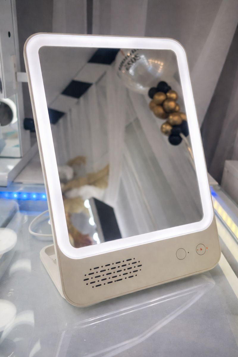 The Glam & Go combines adjustable LED lighting, built-in Bluetooth audio, and a compact fold-flat design. Ideal for travel, gifting, or everyday glam, it delivers great lighting and sound wherever you need it.