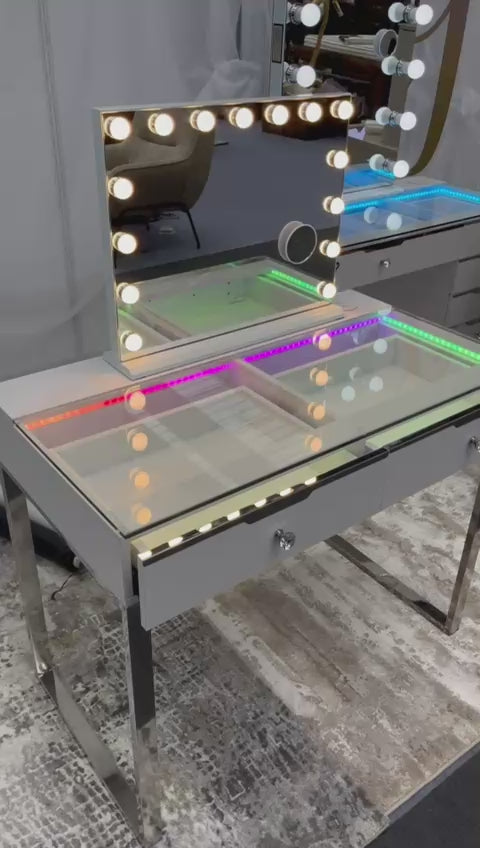 Combining sleek design, modern technology, and functional storage, this vanity is perfect for those seeking a chic and versatile setup.