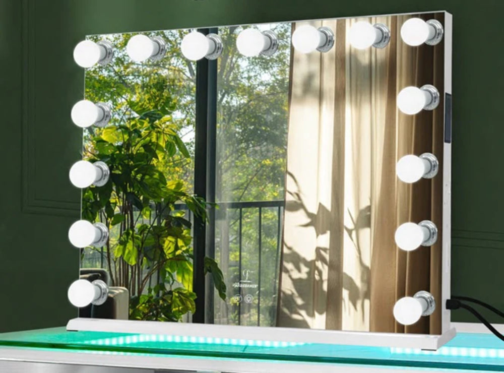 Elevate your room with the Glam Pro Max Mirror, combining elegance and practicality. Featuring 15 LED bulbs with three light settings—cool, warm, and neutral—it provides perfect lighting for every moment.