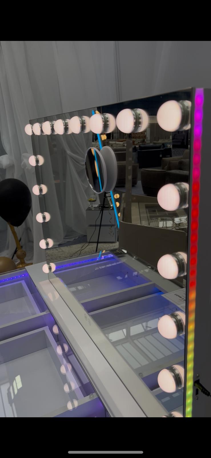 Elevate your daily routine with the Glow 18 Rainbow Mirror. Featuring 18 adjustable LED bulbs offering cool, warm, and neutral light temperatures, it adapts perfectly to your needs. Enjoy customisable brightness for flawless makeup application or grooming.