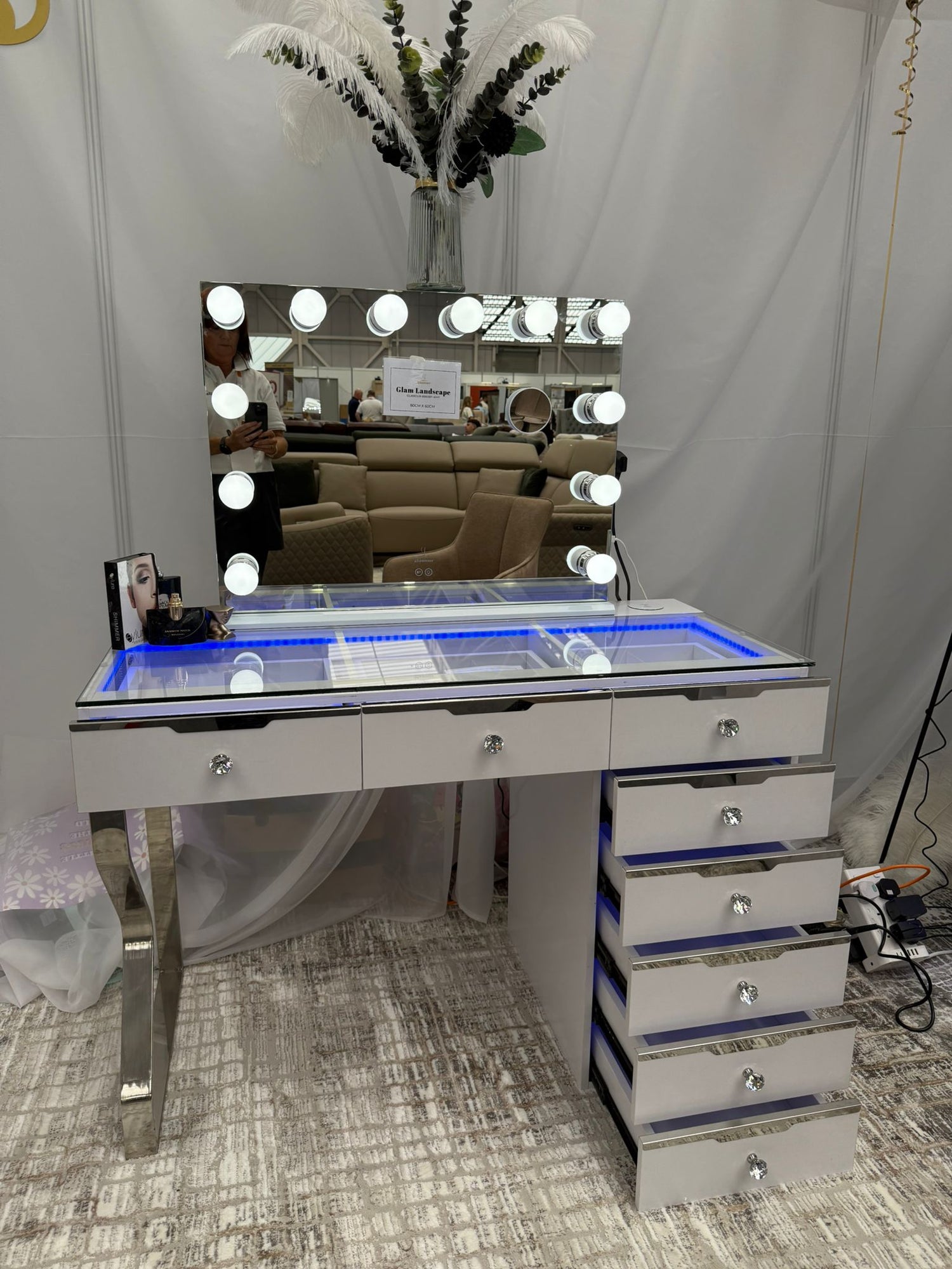 ✅ Built-In LED Light Strip – Integrated on both the desktop and drawers, creating a soft, glamorous glow - Available in 3 White Light tones and Rainbow